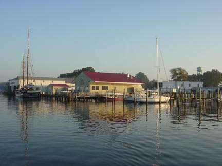 alongside at Schaeffer’s in Chesapeake City. Dining ashore, John’s wife and mother-law joined us as we watched in awe while several very large ships and barges passed in the canal. This gave us an opportunity to discuss lights and the many rhymes that are used to remember what might be approaching – very important for the next few days. Day Thr By