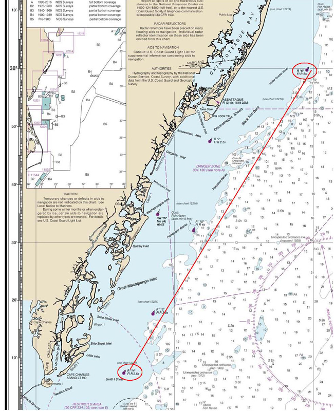 Cross Ledge Range of Delaware Bay. Following is an
